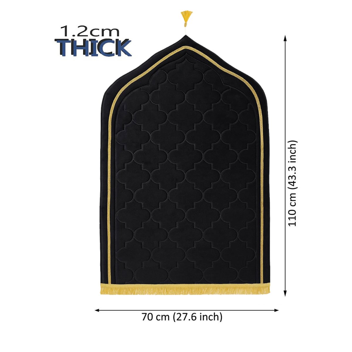 This gift pack brings together comfort, devotion, and personal meaning. It includes a premium MySalahMat prayer mat and a black Holy Quran 14x 20cm , both designed for daily use and special gifting. The prayer mat offers a soft surface and supportive padding to keep you comfortable during prayer. The design helps you stay focused and steady. The Holy Quran comes in an elegant black cover and is printed with a personalized name. This detail makes the gift meaningful and memorable. The Quran features clear text that supports easy reading and regular recitation. This gift pack suits Ramadan, Eid, weddings, birthdays, and other special occasions. It is ideal for personal use or as a thoughtful gift for family and friends. Bullet Points • Complete gift set with prayer mat and Holy Quran • Personalized name printed on the black Quran 14 x 20 cm • Premium quality prayer mat for daily comfort • Soft surface suitable for knees and hands • Elegant black theme for a refined look • Suitable for men and women • Ideal for Ramadan, Eid, and special gifting • Meaningful and practical Islamic gift setAdditional information