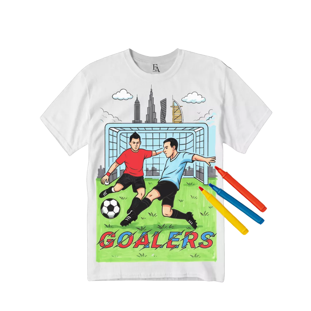 Love football? Color your own GOALERs T-shirt and show your passion for the game. Use the included washable markers to design your favorite football scenes, players, or team colors. Wash and recolor anytime. Perfect for young football fans who dream big and play hard.
